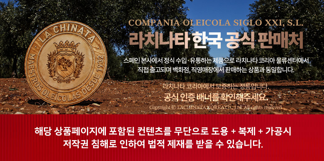 | 원재료명 | 엑스트라버진올리브오일 100% | ||