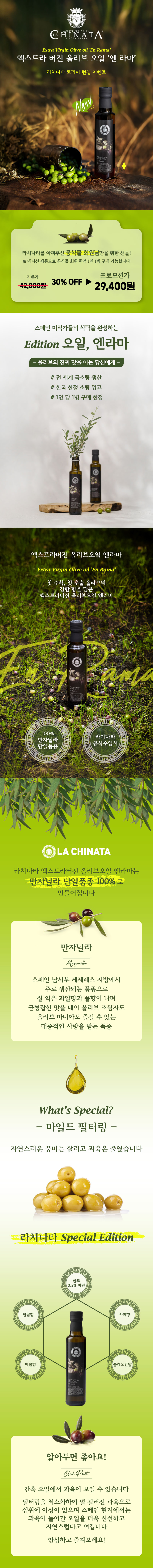| 원재료명 | 엑스트라버진올리브오일 100% | ||